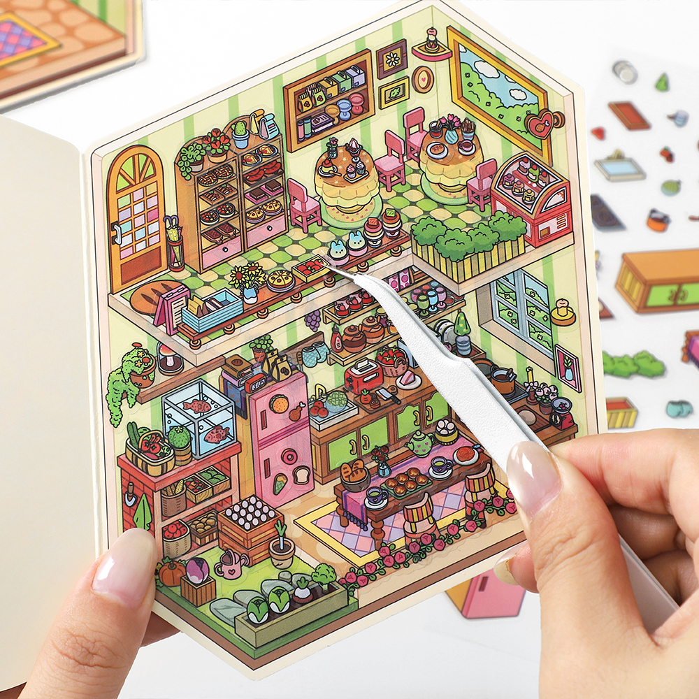 送镊子)造景贴纸微缩场景合集本贴纸本立体换装贴纸女孩儿童diy防水贴画亲子小游戏解压小屋玩具装饰小图案