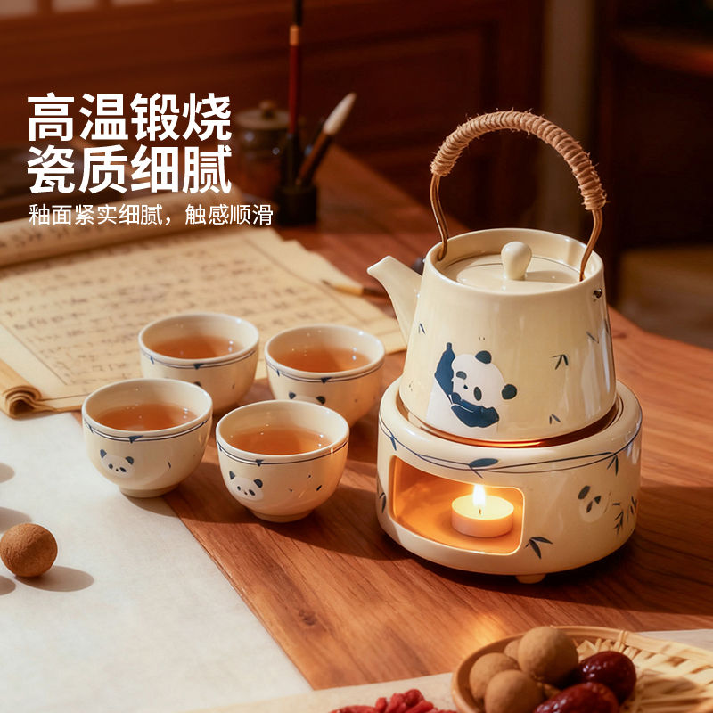 摩登主妇mototo熊猫泡茶壶围炉煮茶家用年轻人茶具套装一人饮茶杯