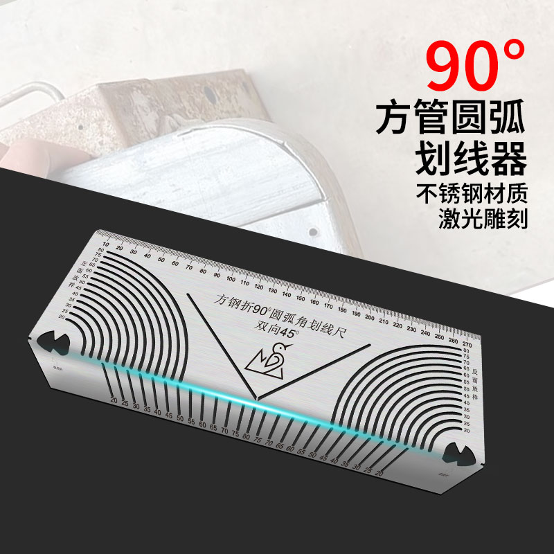 方管折圆尺方钢折90度圆弧角画线尺方管变直角圆弧多功能划线