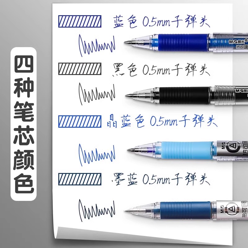 晨光正品热可擦中性笔按动替芯晶蓝黑色笔芯0.5mmST笔头大容量魔力易摩磨擦签字笔小学生专用学习用品文具