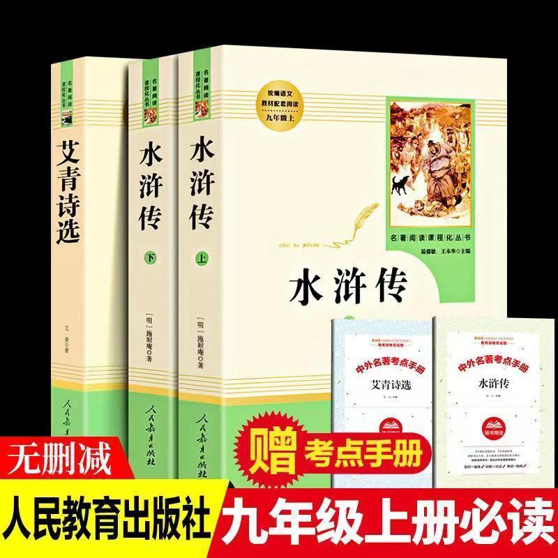 艾青诗选和水浒传原著正版完整版唐诗三百首儒林外史简爱人民教育出版社人教版初中生九年级上册必读课外阅读书籍名著初三新语考点