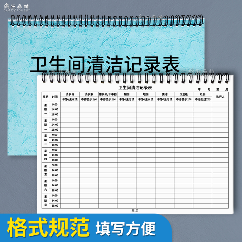 卫生间清洁记录表酒店餐厅卫生间清洁检查表公共卫生间厕所清洁巡查登记表洗手间清洁记录本厕所卫生巡查记录