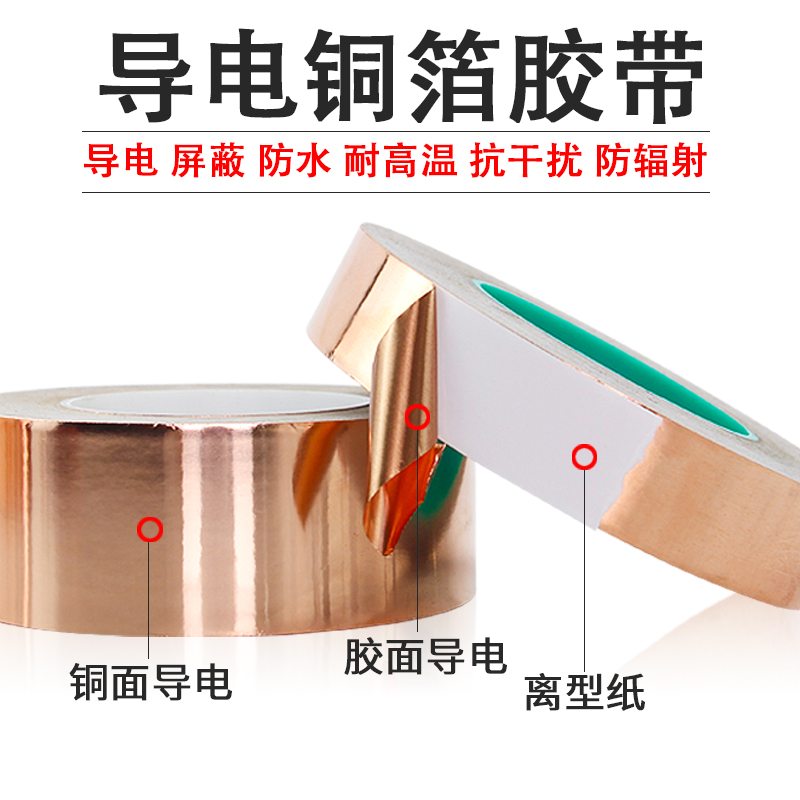 双导铜箔胶带手机主板散热铜箔贴纸diy实验铜箔纸地坪信号增强屏蔽胶布耐高温单面导电胶带纯铜加厚铜胶带