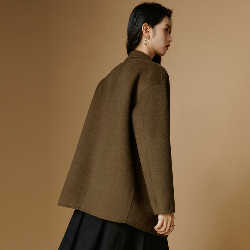 反季双面羊绒大衣女中长款2025新款西装领双排扣宽松显瘦毛呢外套