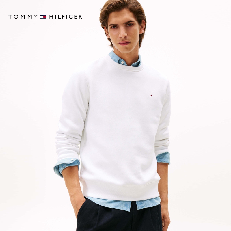 【柔软抓绒】Tommy25秋冬新款男装美式休闲通勤简约纯色圆领卫衣