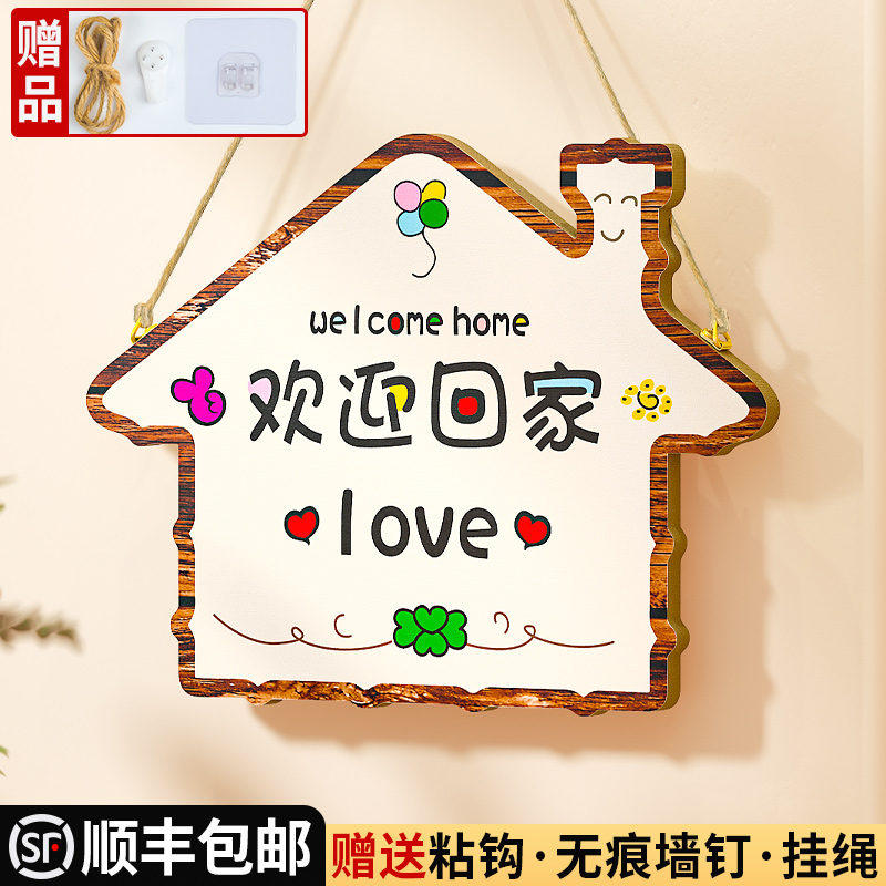 现货速发欢迎回家入户门装饰挂牌创意门牌卧室房间家门口挂饰实木