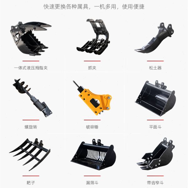 现货0.8-3吨挖掘机属具 抓夹松土器破碎锤螺旋钻 挖掘机配件