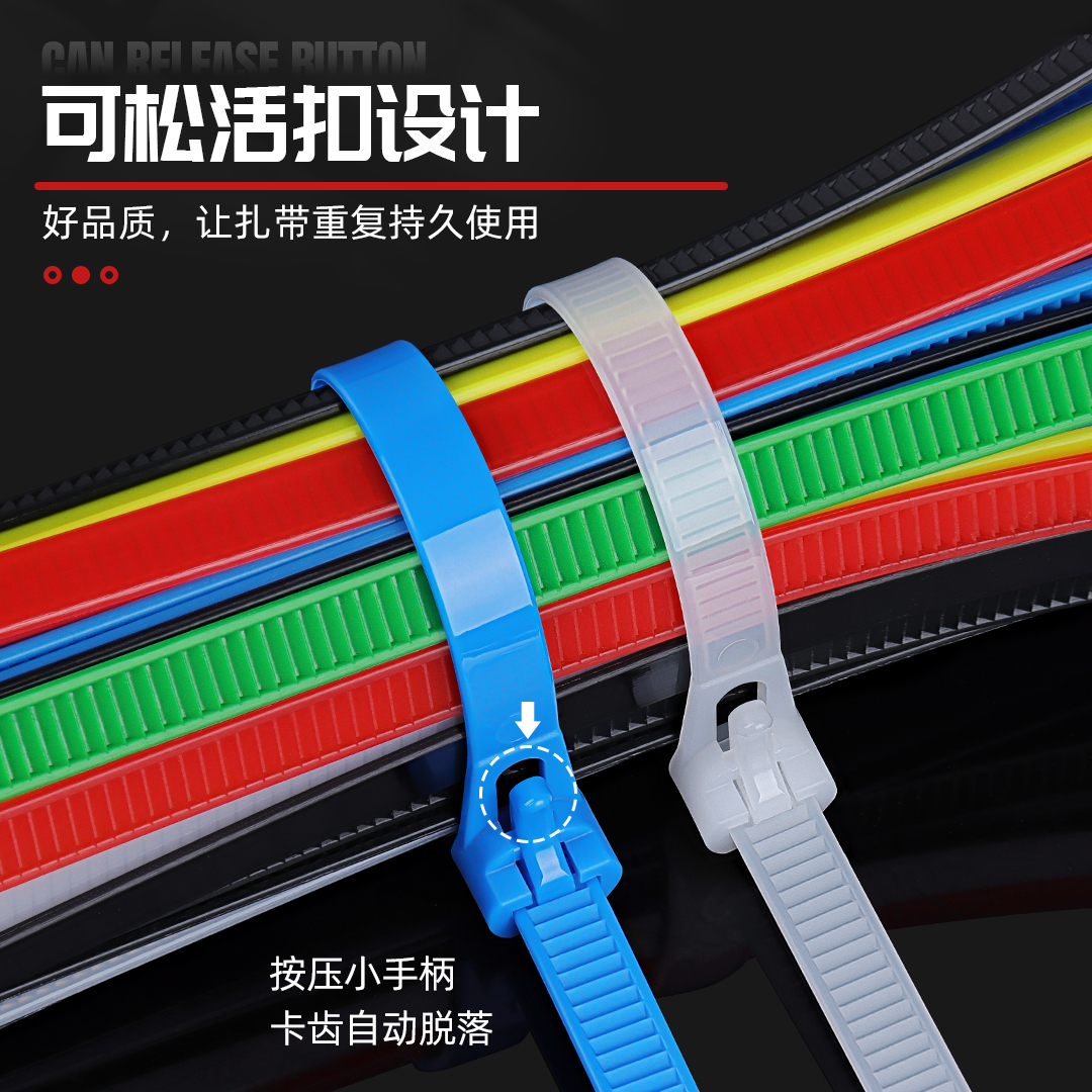 可松式尼龙扎带塑料卡扣活扣彩色捆绑带束线带可拆卸重复使用神器