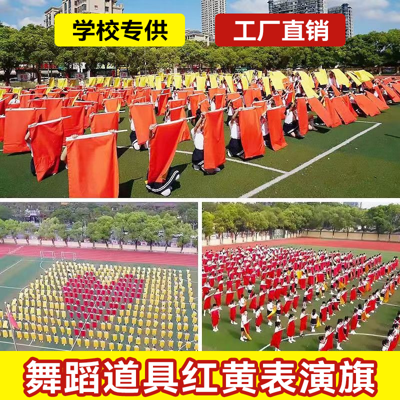 手持红旗舞蹈道具表演旗子带杆红黄双面旗学校运动会方队手摇小红旗幼儿园六一儿童节舞台演出旗帜定做定制