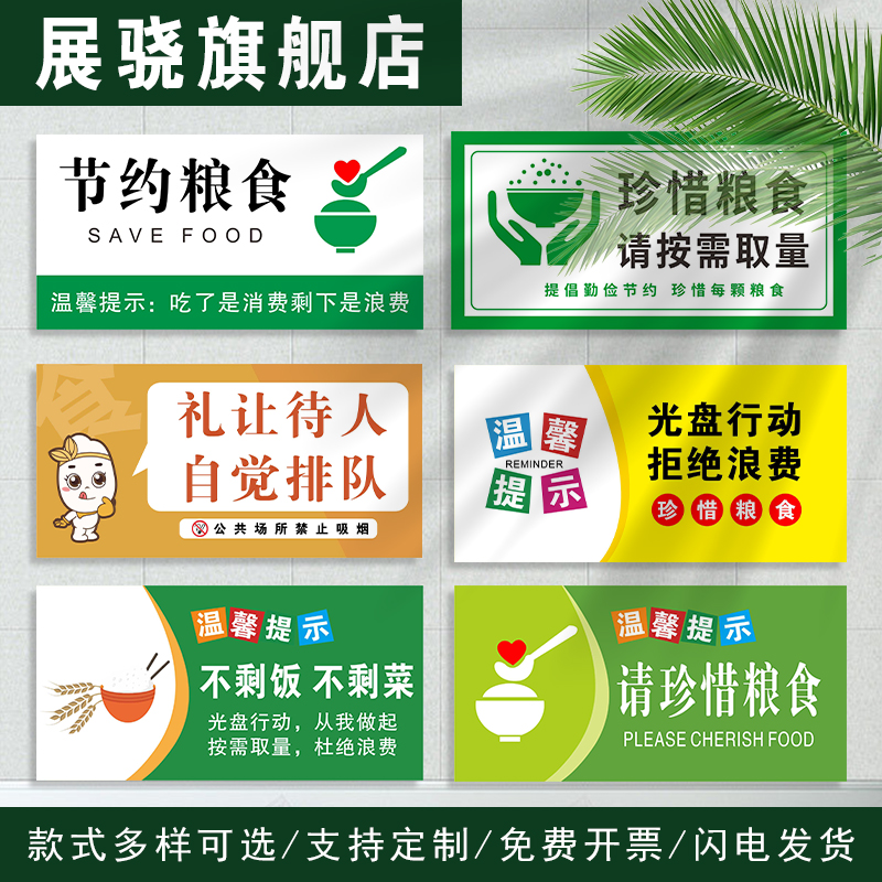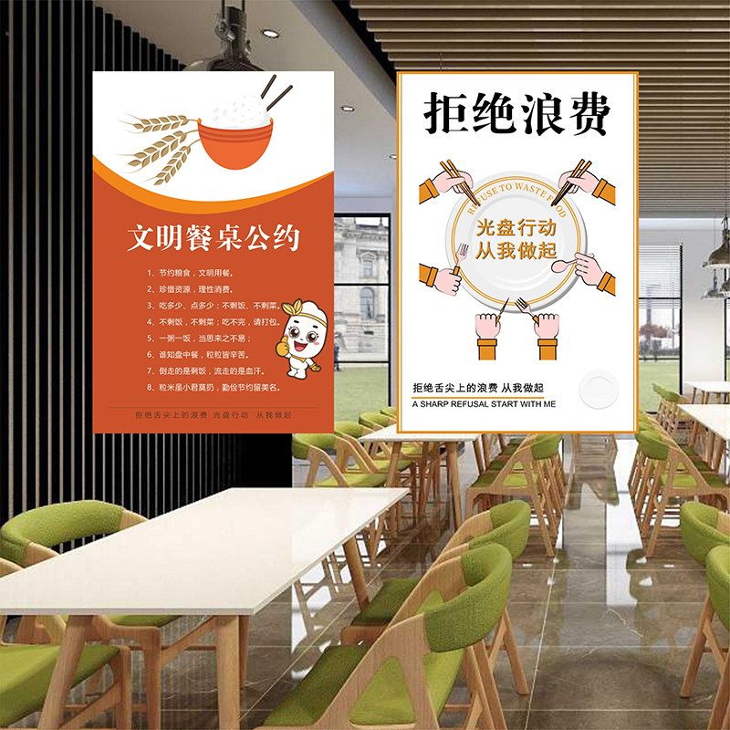 温馨提示牌光盘行动拒绝浪费不剩饭不剩菜请珍惜粮食勤俭节约按需取量礼让待人自觉排队文明餐桌公约标识牌贴