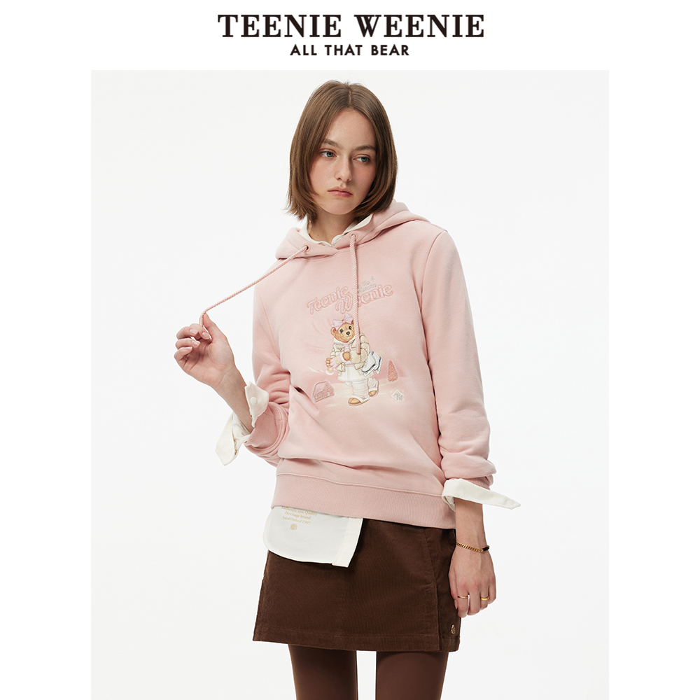 TeenieWeenie小熊女装卫衣冬季撞色抽绳连帽休闲时尚活力学院上衣