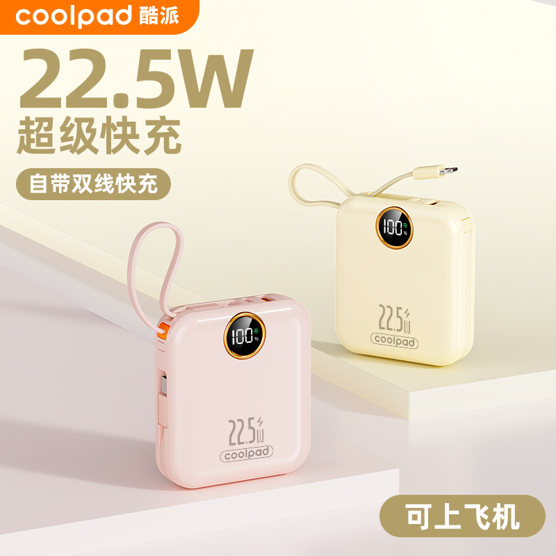 新国标3C认证酷派大容量自带四线Type-C线充电宝新款2万毫安时兼容22.5W超级快充1万电超薄小巧便携移动电源