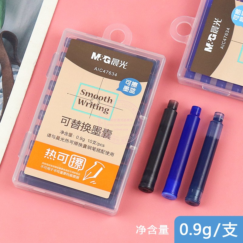 晨光热可擦钢笔可替换墨囊学生用3.4墨水胆黑色晶蓝墨蓝 AIC47634