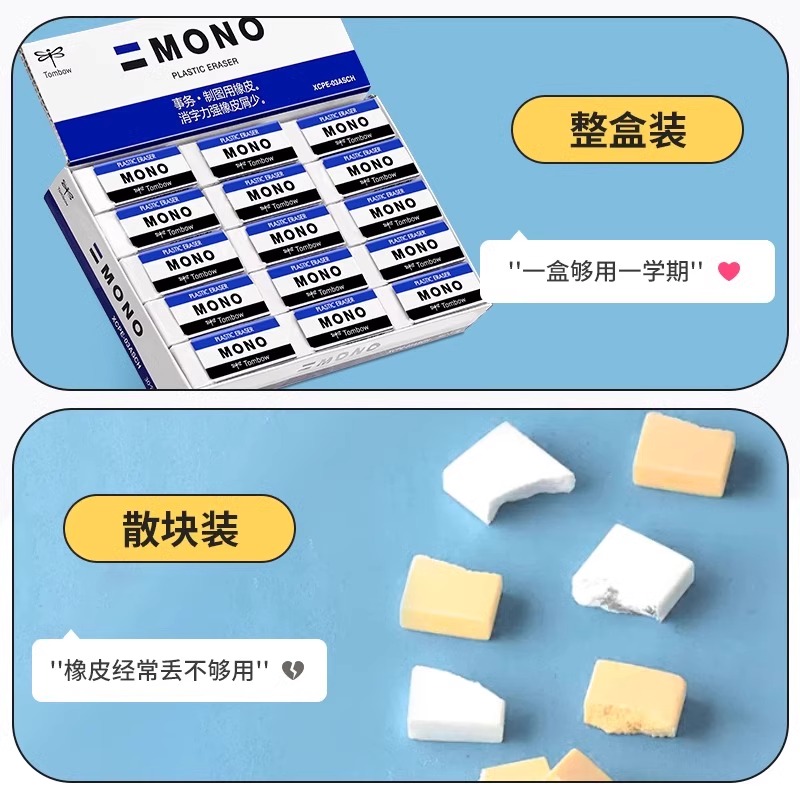 日本Tombow蜻蜓mono橡皮擦白色无毒儿童小学生专用不留痕美术素描hb4b2比铅笔进口橡皮擦的干净文具大赏正品