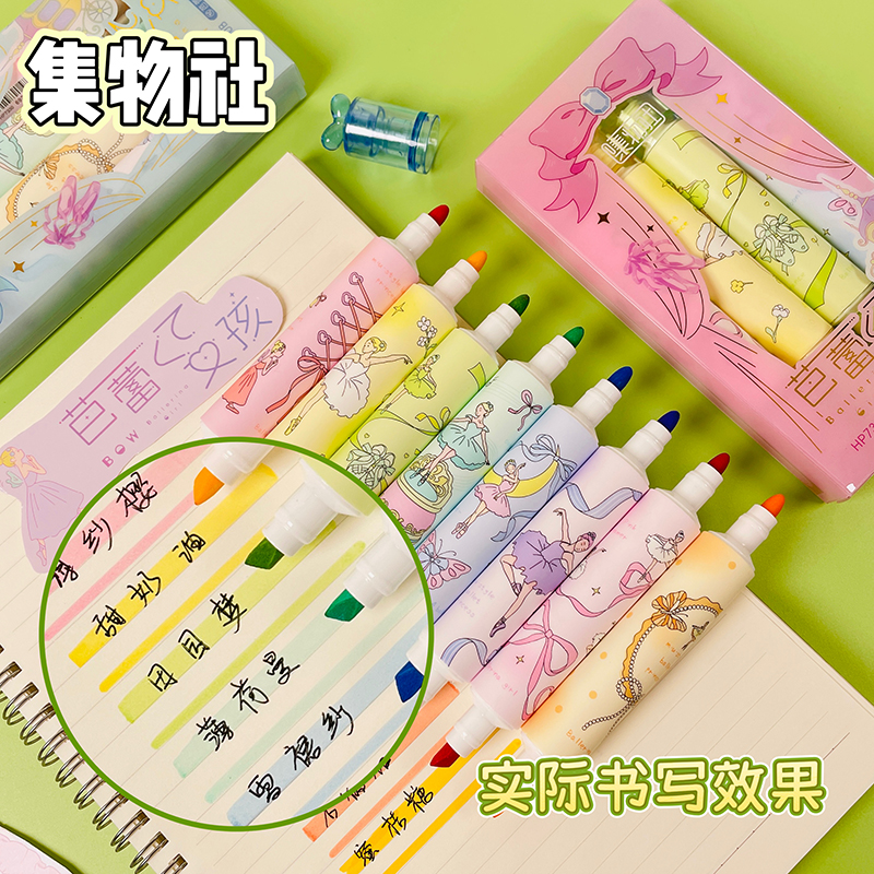 集物社芭蕾双头大容量荧光标记笔记号笔彩色笔标注笔涂划重点手账笔一套水彩笔小学生用彩笔做笔记的笔专用