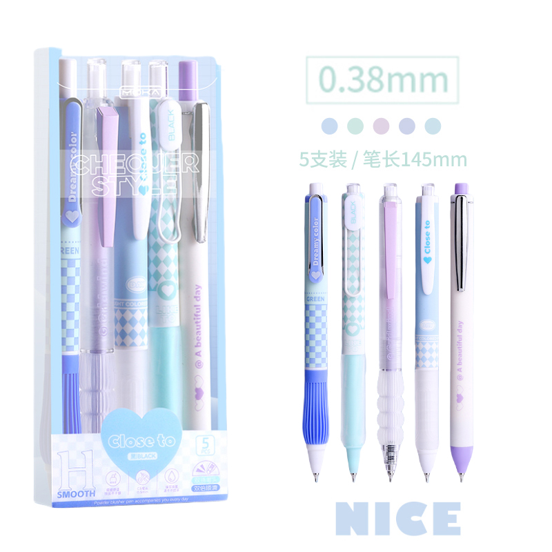0.38按动中性笔高颜值马卡龙色系极细ST笔尖大容量速干甄顺滑黑笔