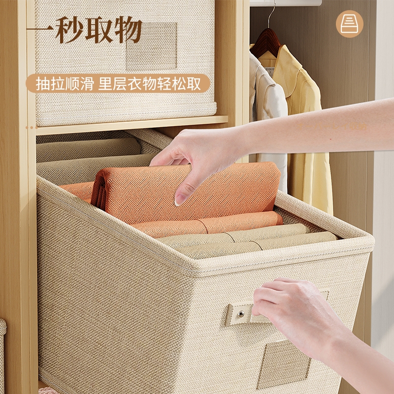 收纳箱家用抽屉式衣柜布艺棉麻衣服储物筐袋放内衣衣物整理盒宿舍