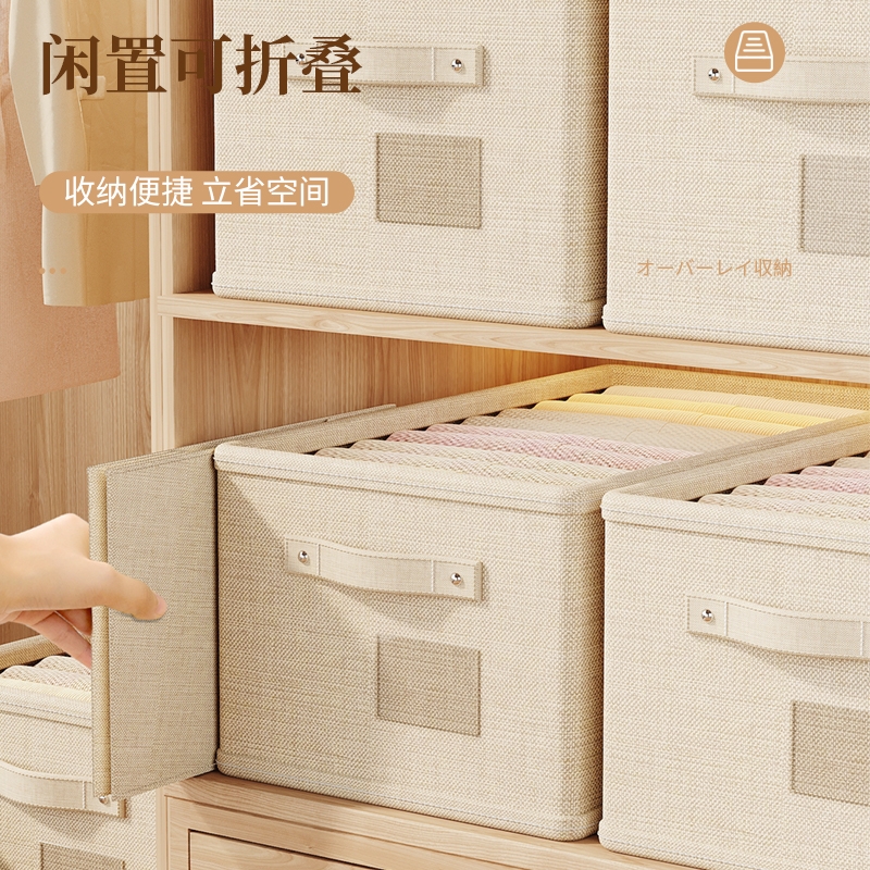 衣服收纳箱家用衣柜分层整理盒放衣物裤子布艺棉麻折叠储物筐神器