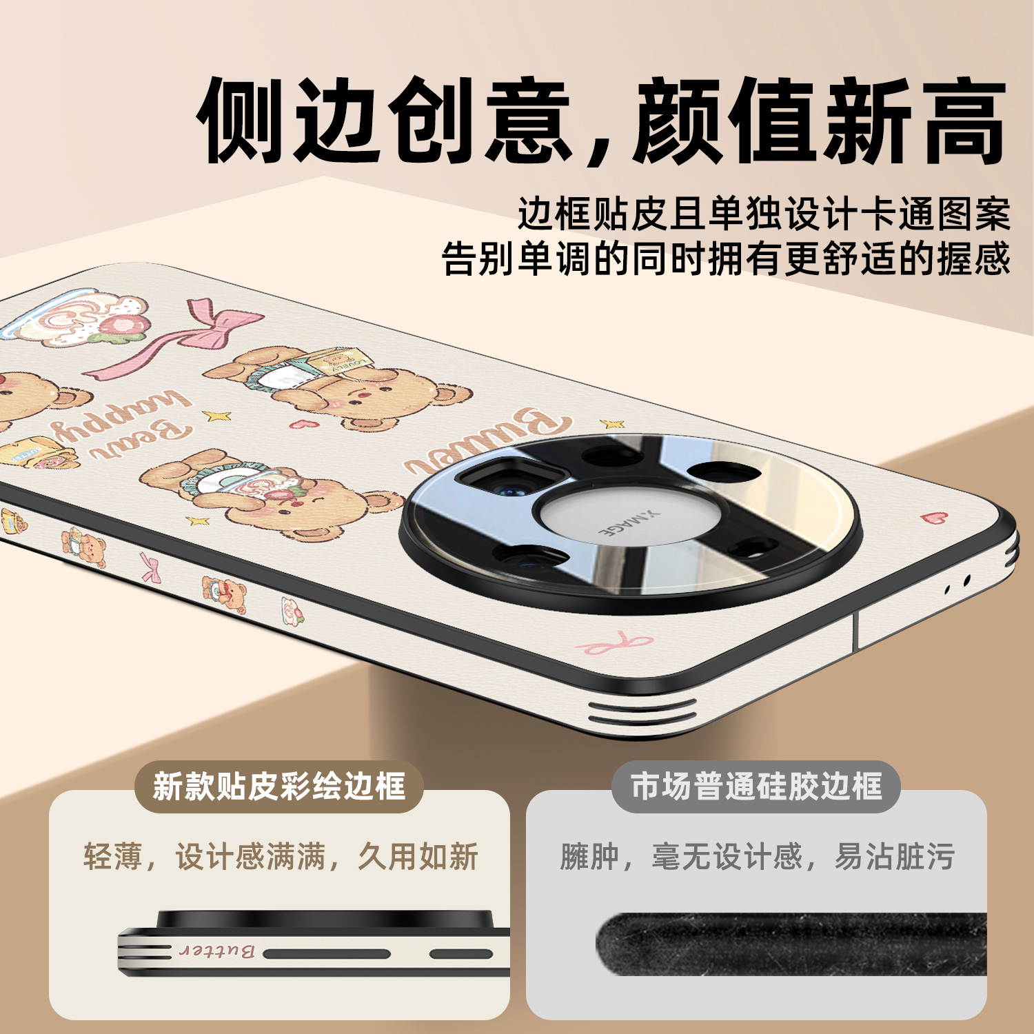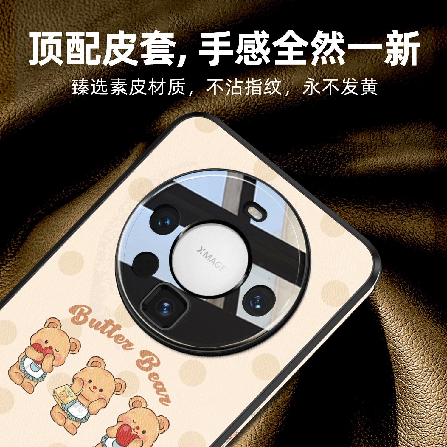维泡新款适用华为mate60pro手机壳高档皮纹春天可爱mt60por全包素皮Mata卡通高级女防摔外壳网红碎花小熊简约
