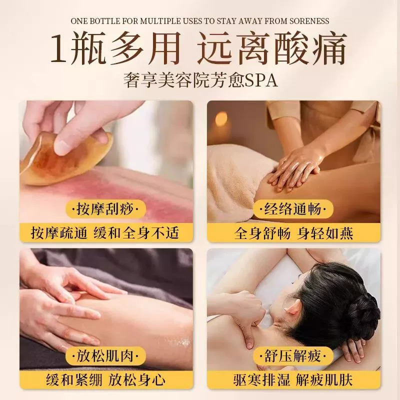 生姜艾草发热按摩精油私处全身体疏通经络开背推拿揉排毒刮痧专用
