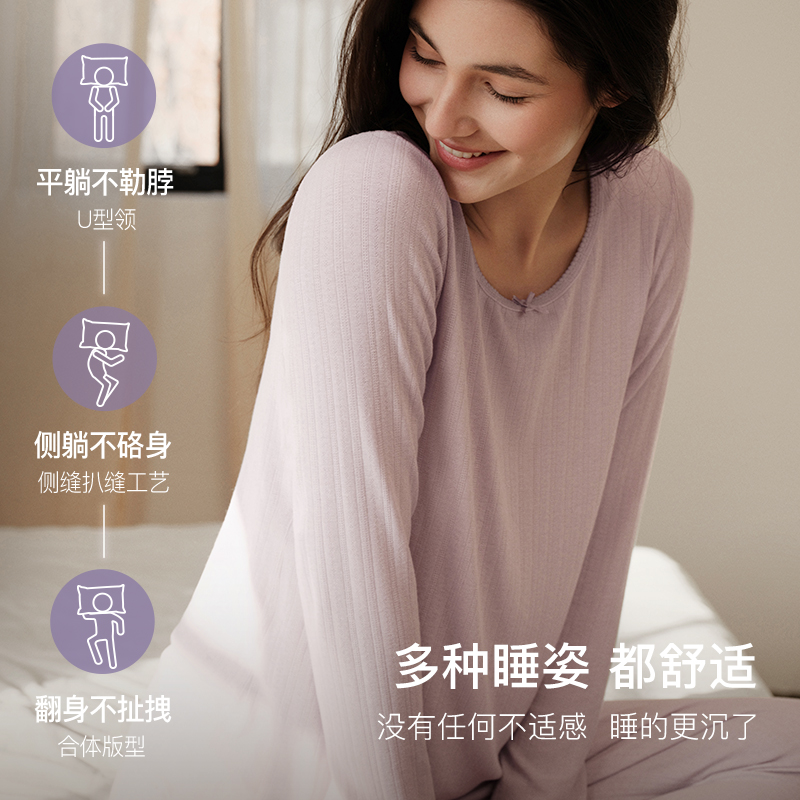 ubras纯棉家居服女士情侣睡衣套装可外穿100%棉布料男女款秋冬季
