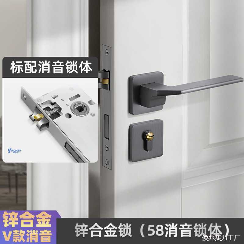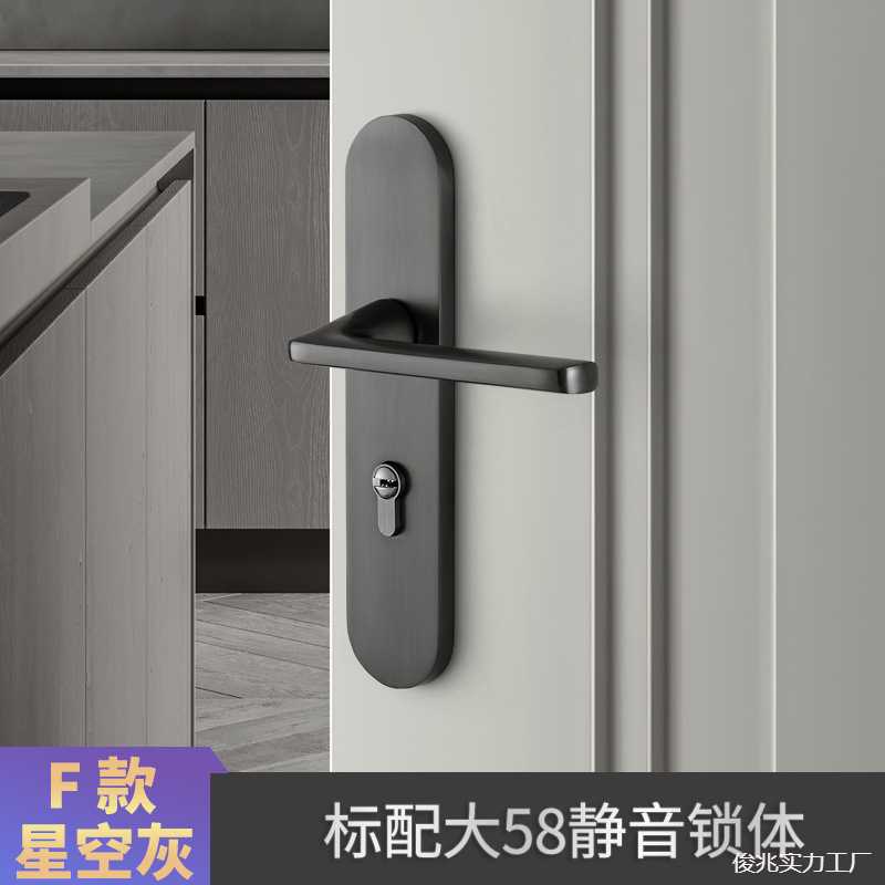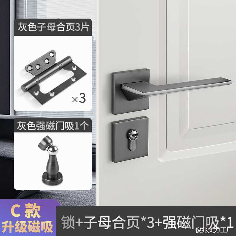 灰黑现代门锁室内卧室静音房门锁分体木门把手家用通用型58磁吸素