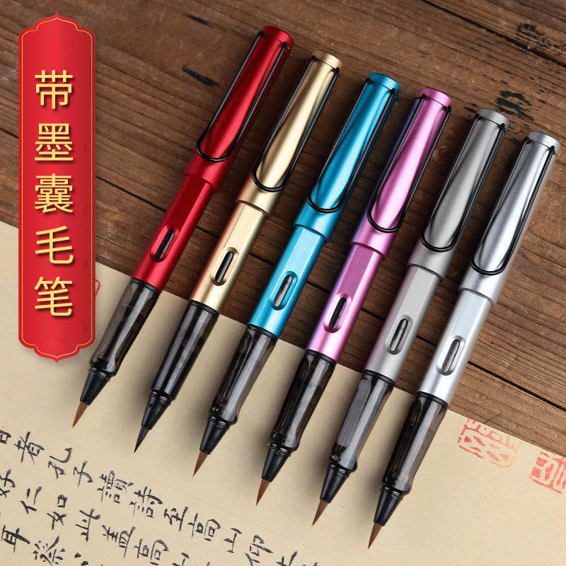 初学者软笔便携墨囊钢笔式毛笔小楷秀丽笔可加墨软头笔抄经书法笔狼毫笔头套装软头抄签字笔便携