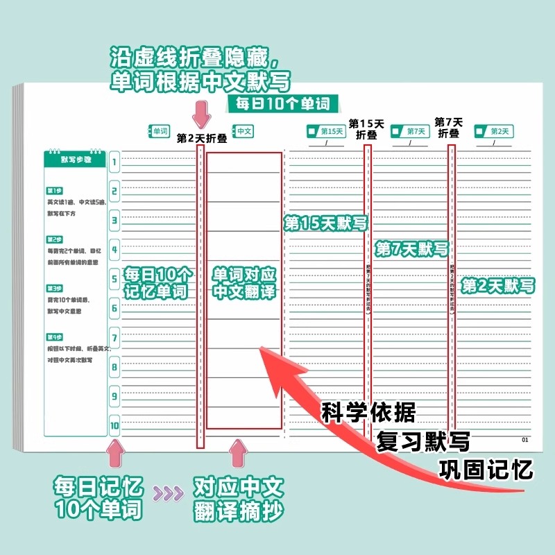 英语单词本默写本记忆艾宾浩斯遗忘曲线记背神器积累考研大学生纸便携式学习笔记本子初高中背诵听写速记活页