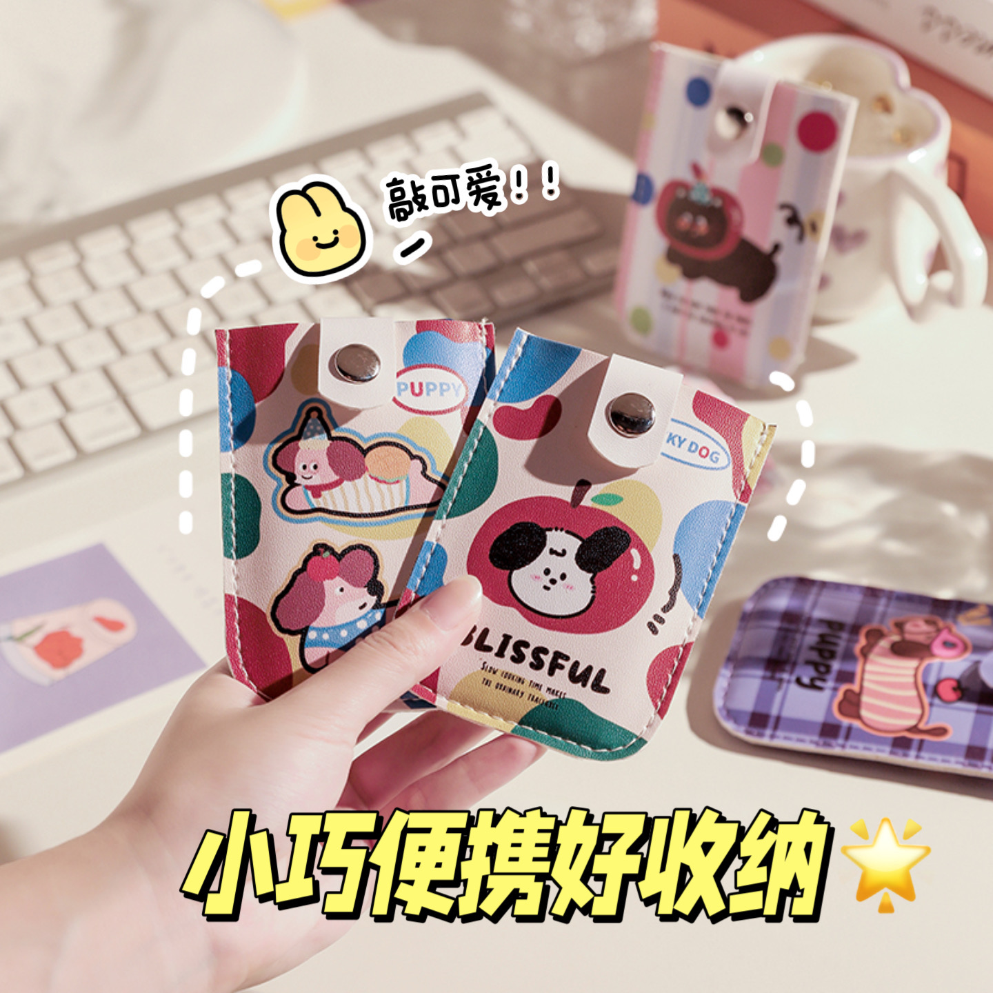 多巴胺抽拉卡包大容量证件套身份证卡通卡套多卡位防消磁女收纳包