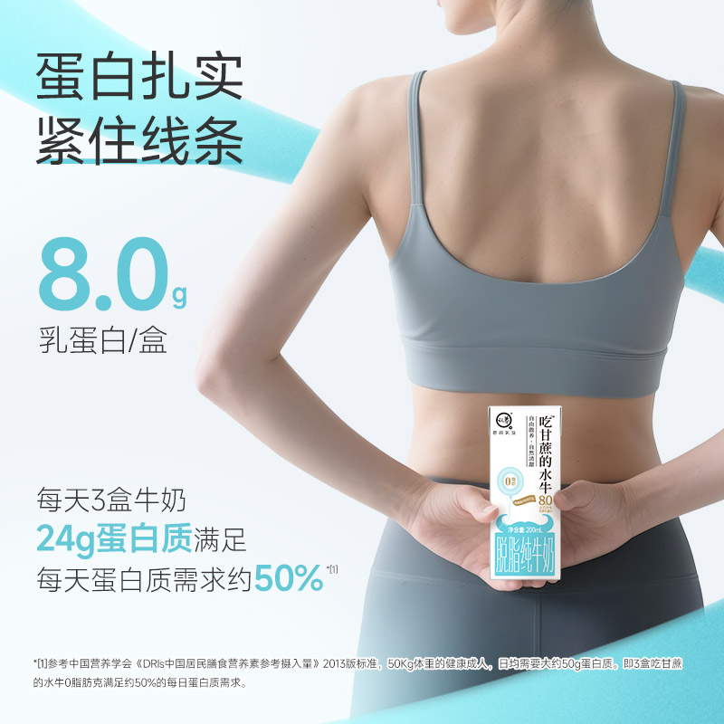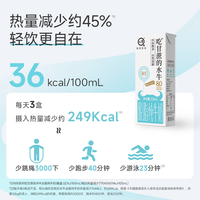 认养吃甘蔗的水牛奶脱脂200ml*10盒0脂肪牛奶高钙酪蛋白牛乳