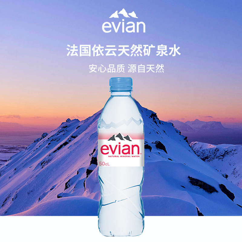evian依云法国进口天然弱碱性含锶矿泉水500ml/330ml*24瓶/箱饮用