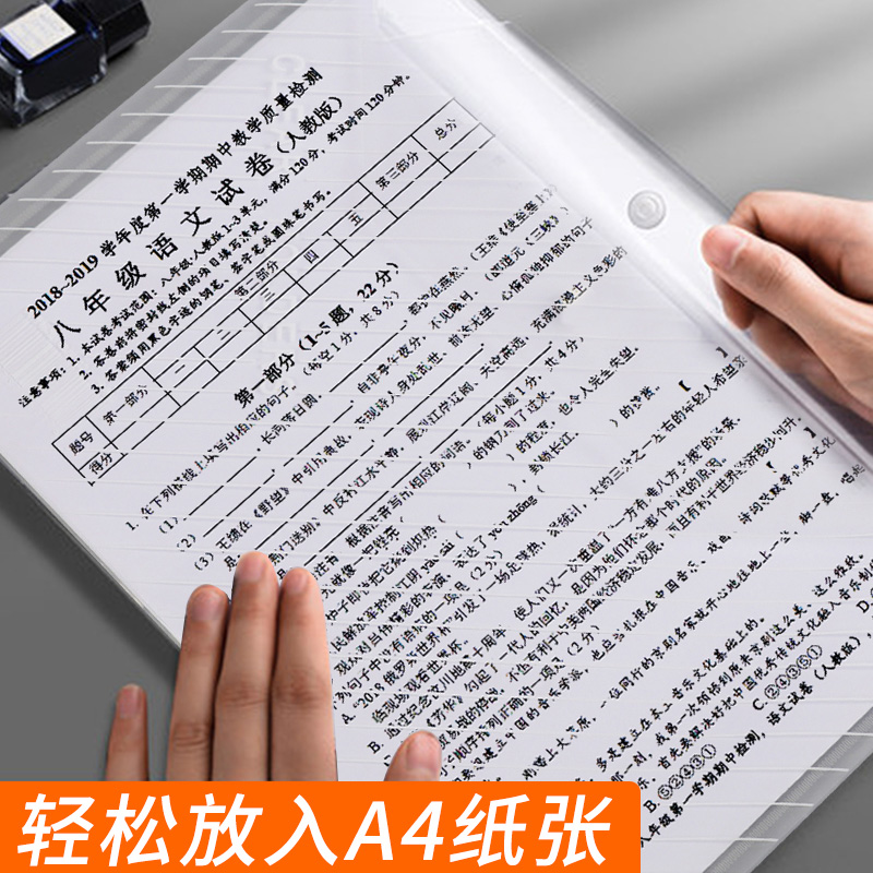 晨光a4文件袋纽扣袋按扣袋文件夹加厚透明档案袋塑料大容量资料袋商务办公学生考试文具用品试卷整理收纳用品