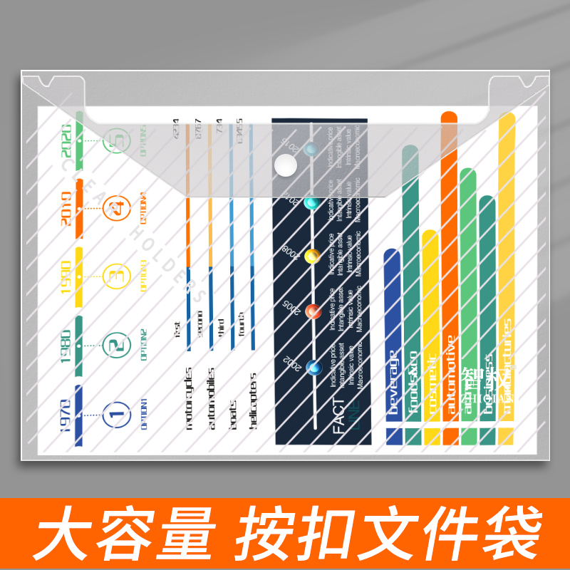 智权按扣文件袋a4透明分类收纳袋硬塑料资料袋档案袋加厚防水学生用文具试卷pp办公用品大全批发大容量高颜值