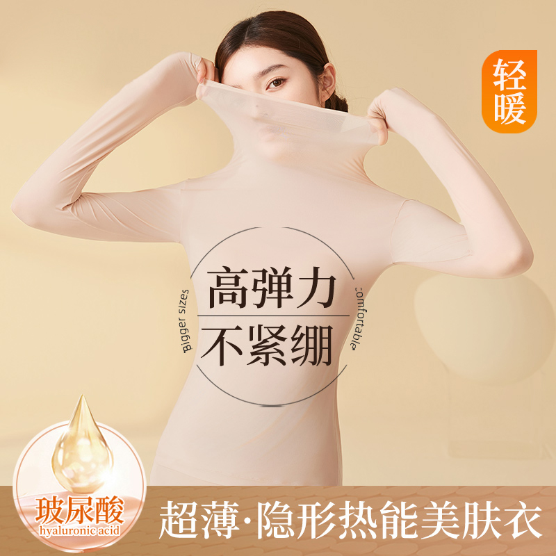 秋冬新款高领玻尿酸美肤衣套装超轻薄隐形热能衣长袖无痕保暖打底