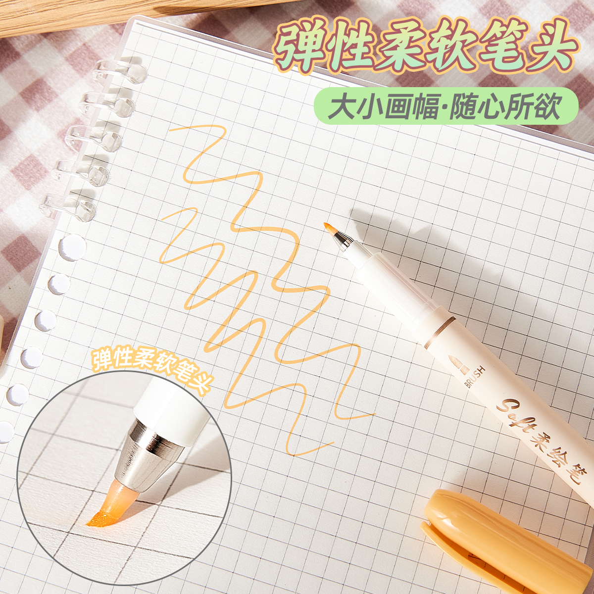 软头柔绘彩色秀丽笔国潮手账笔四季色系绘画水彩笔新国色秀丽画笔涂鸦思维导图练字书法小楷美术勾线笔全套