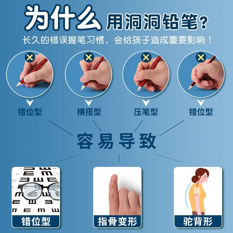 晨光洞洞铅笔小学生无毒幼儿园专用2b铅笔儿童矫正握姿一年级学生三角杆彩杆hb2比洞洞铅初学者用三角形纠正