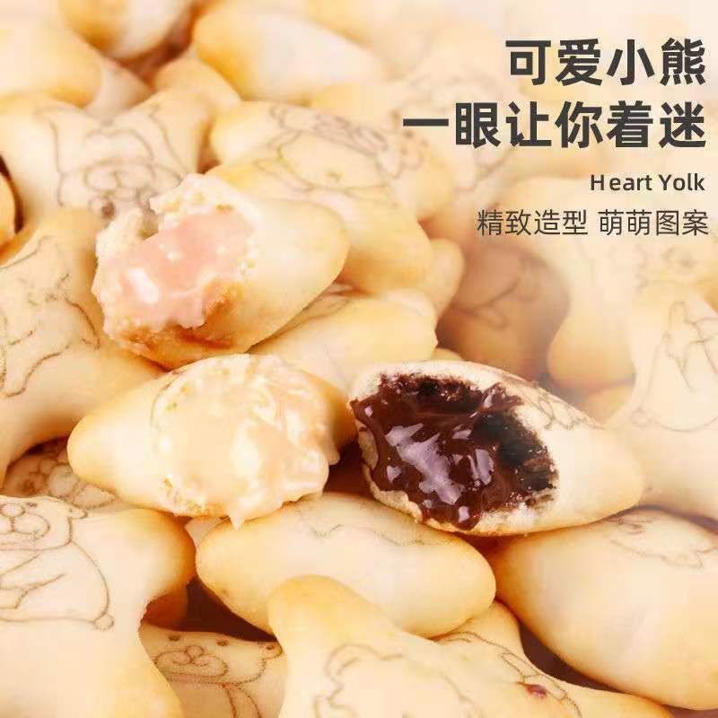 小熊注心饼干网红夹心巧克力饼干独立小包装儿童零食休闲食品整箱