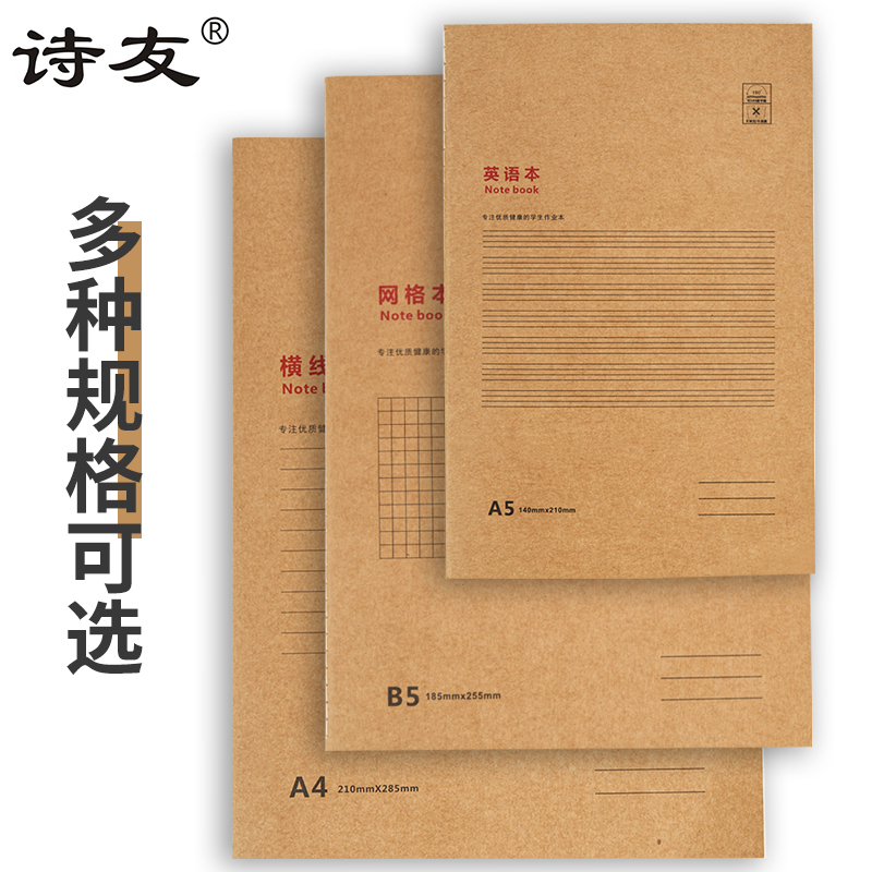 牛皮纸笔记本子A4横线a4英语方格空白练习本简约大学生ins风b5加厚康奈尔笔记本网格记事本大号车线记录本a5