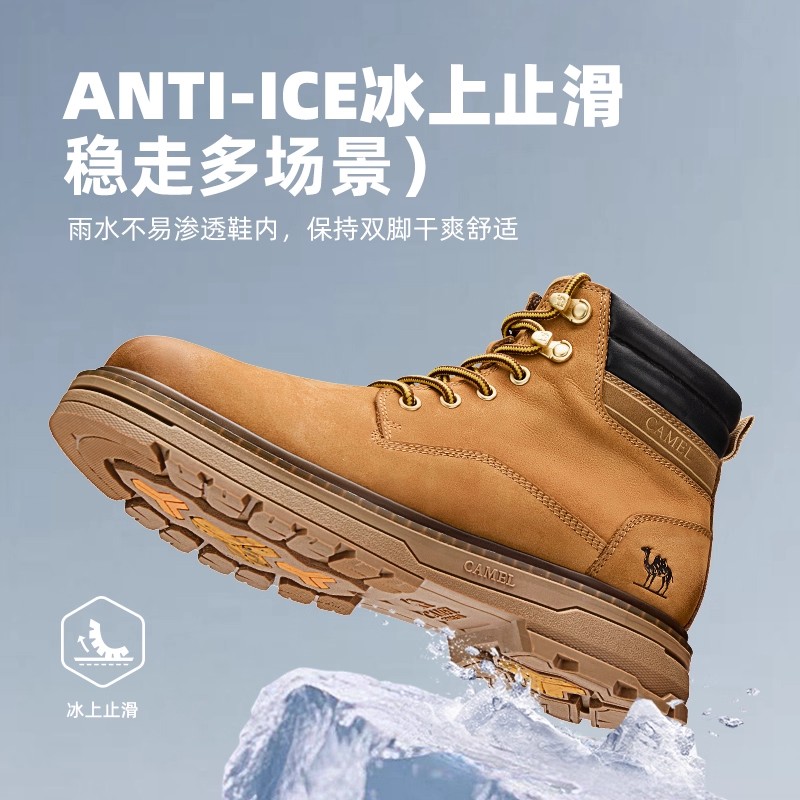 骆驼户外休闲鞋马丁靴2025冬季新款耐磨大黄靴户外复古工装靴男鞋