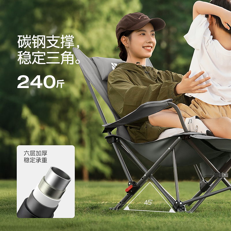户外折叠椅加高月亮椅露营椅子便携板凳钓鱼沙滩躺椅野餐桌椅装备