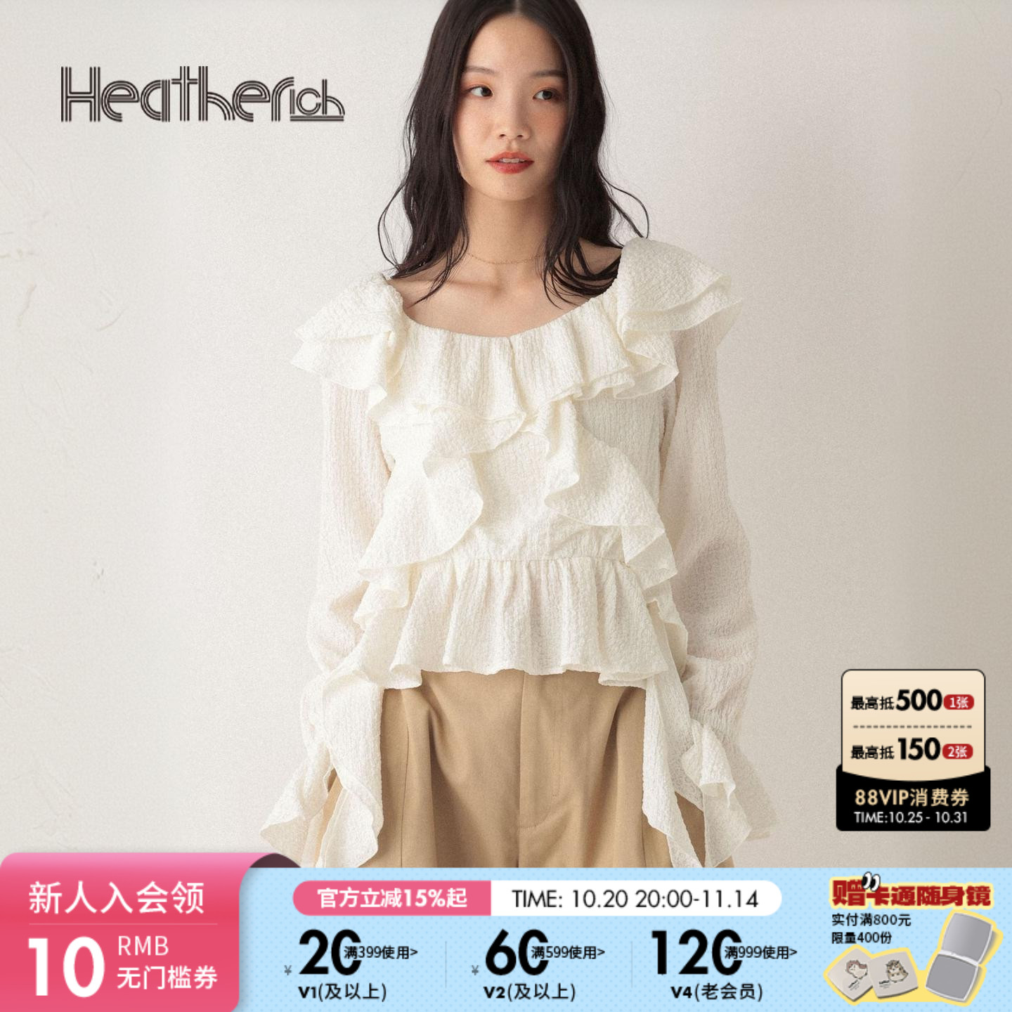 Heatherich衬衫女2025秋季新款法式简约一字肩不规则上衣590788