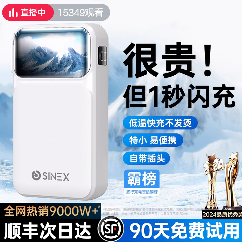 【政府补贴15%】SINEX充电宝2025年新款大容量20000W毫安超级快充插头自带双线官方正品适用于苹果17华为iPad