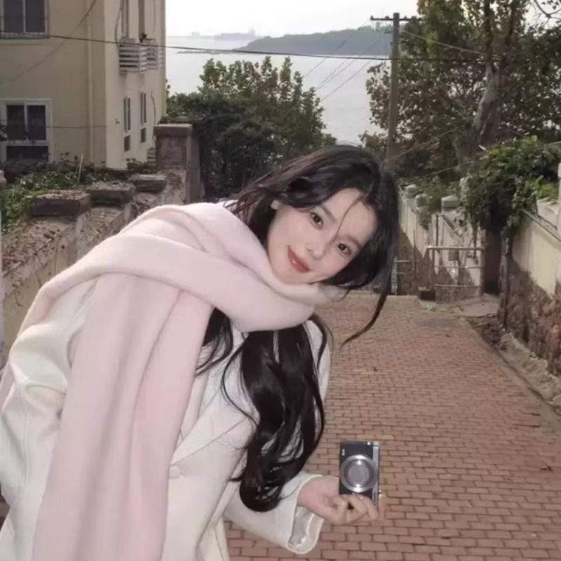 马海毛围巾女冬季韩版百搭粉色显白雪天防寒纯色保暖围脖高级感潮