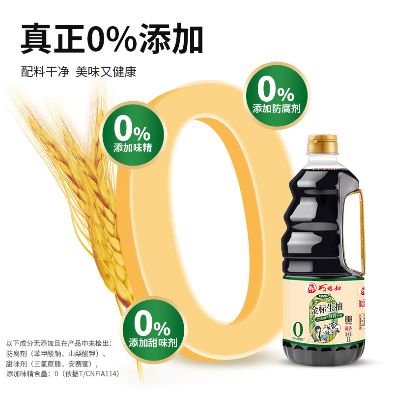 巧媳妇零添加生抽1L酿造酱油家用小米醋香醋凉拌醋饺醋食用醋米醋