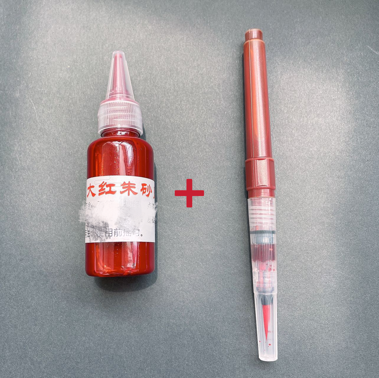 朱砂墨笔自来抄经储红水溶性彩铅小楷毛笔朱砂液墨汁水彩专用水笔