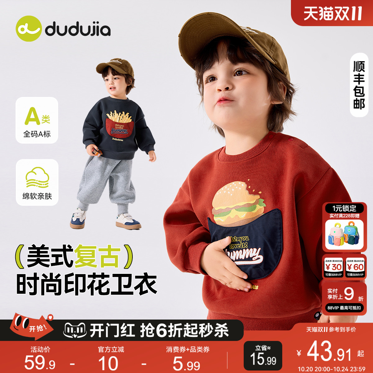 [汉堡薯条]嘟嘟家男童卫衣宝宝秋上衣儿童长袖加绒新款秋冬季童装