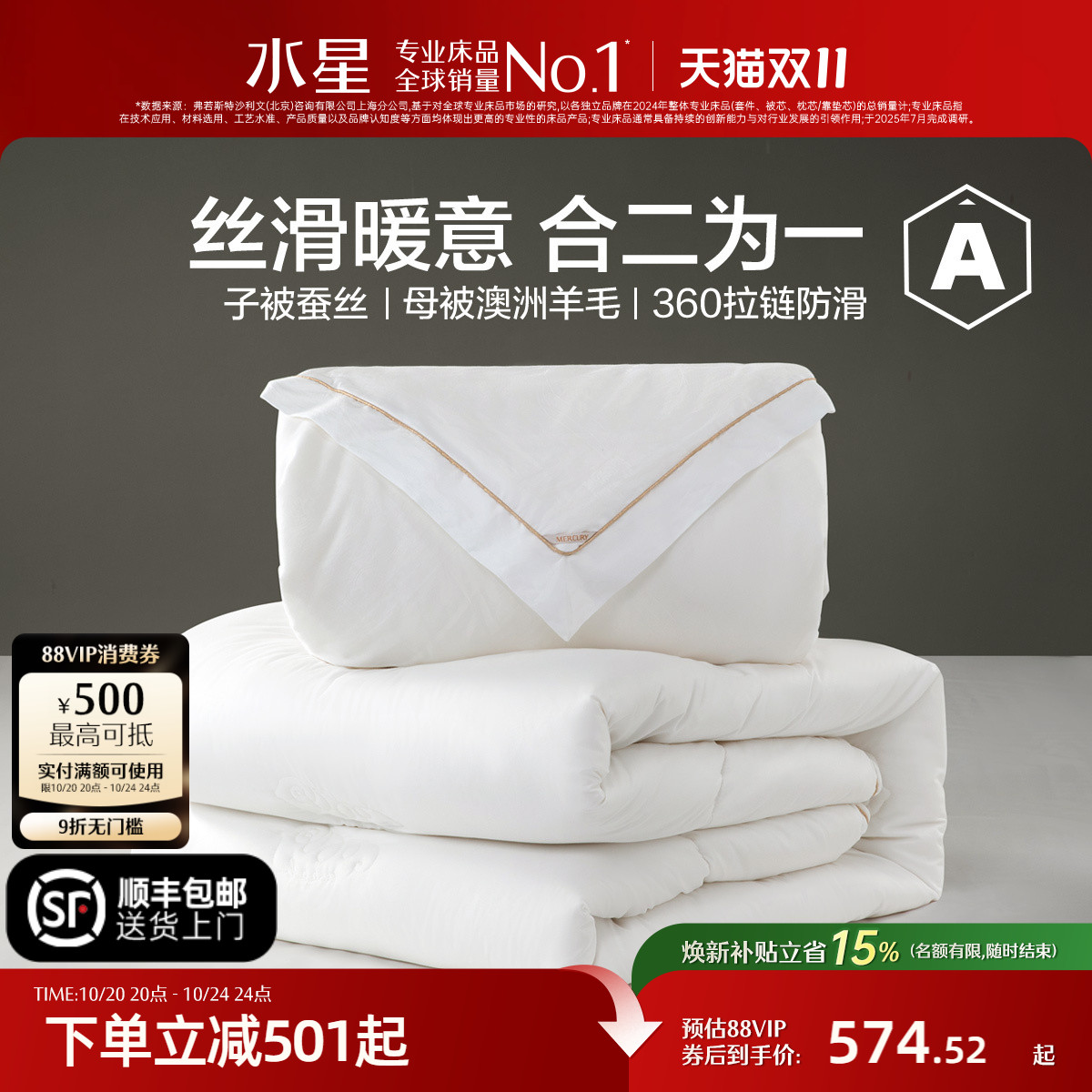 梦洁家纺100桑蚕丝被子春秋被芯抗菌二合一子母冬被通用结婚喜被