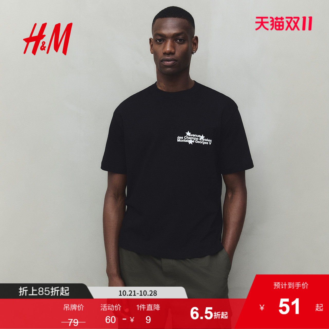 HM男装T恤2024夏季新款印花棉质中等克重落肩宽松短袖上衣12