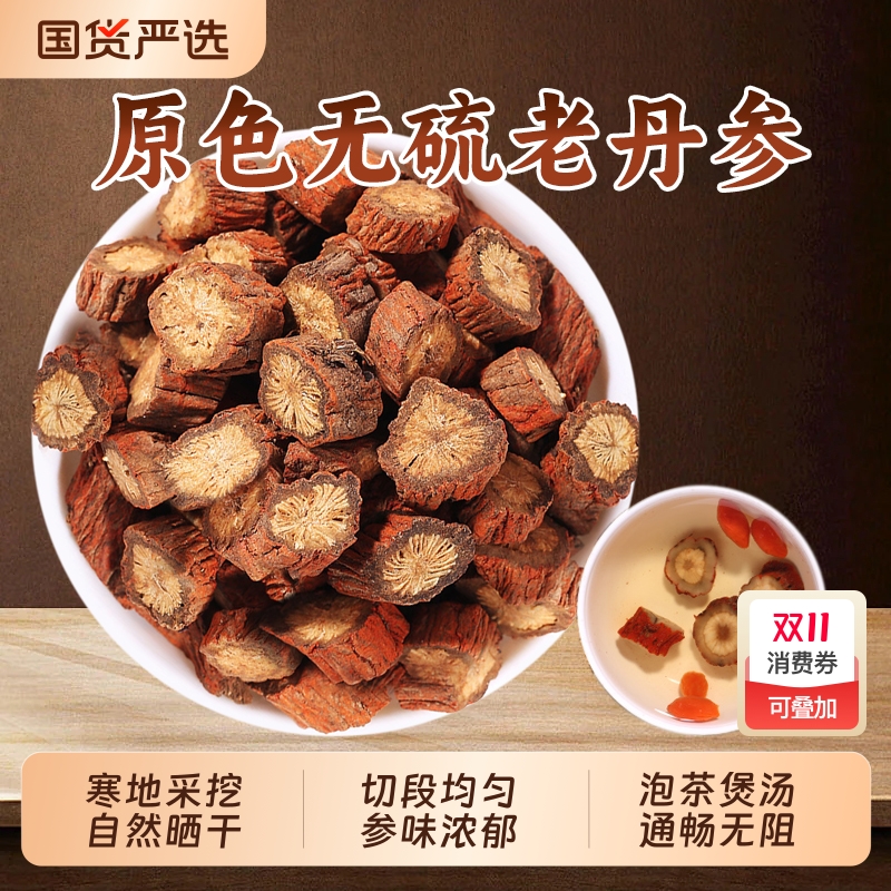 老丹参中药材正品官方旗舰店特级紫丹参片泡水喝丹叁茶粉黄芪山楂