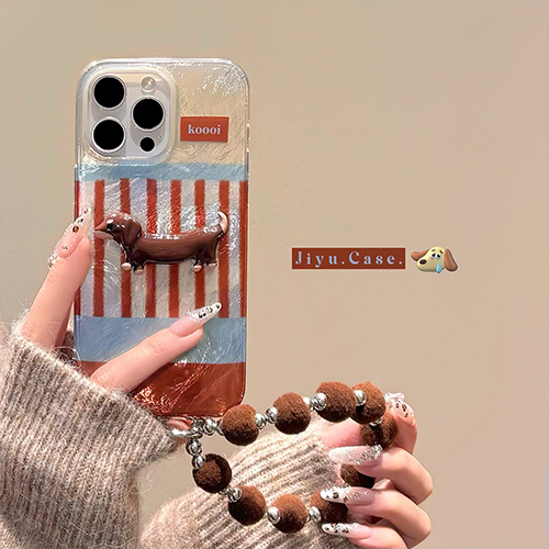 可爱卡通格纹小狗带链条手机壳